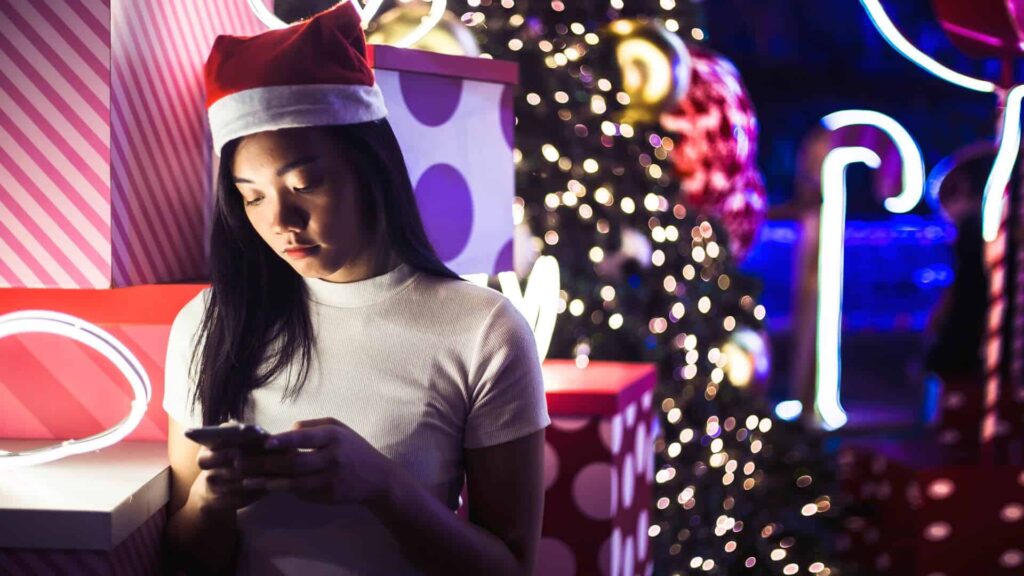 Chica respondiendo al mensaje de su ex en navidad